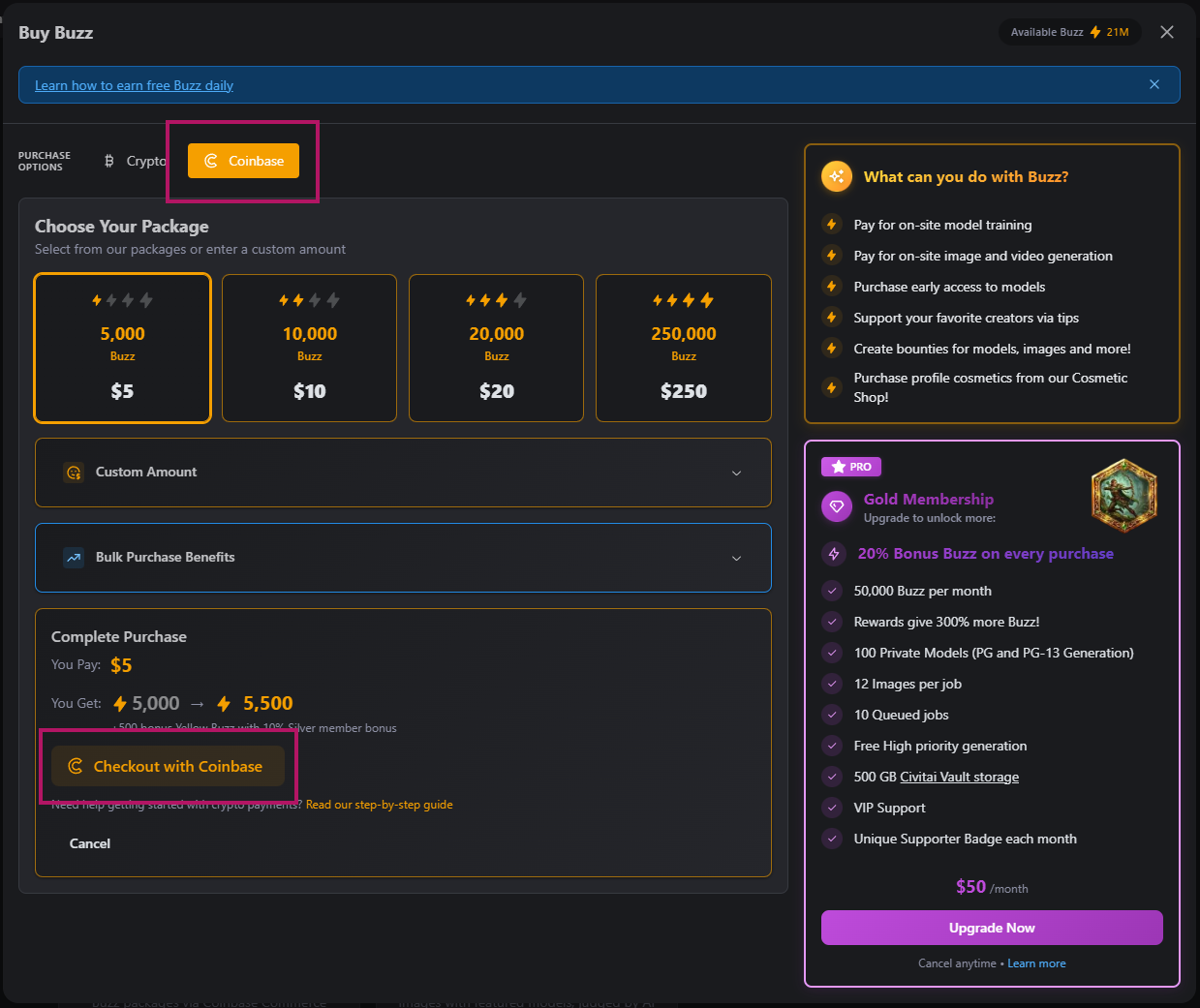 Sending Crypto to Civitai in Exchange for Buzz