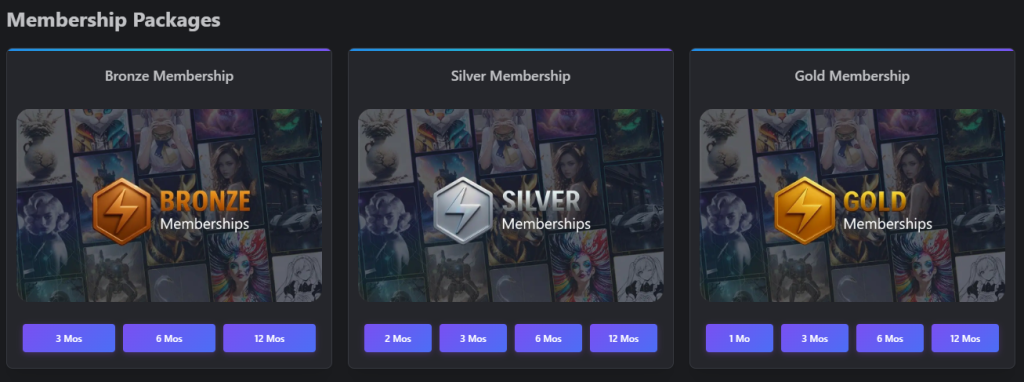 Head to the Gift Card page: https://civitai.com/gift-cards?type=memberships where you’ll be presented with a number of purchase options;
