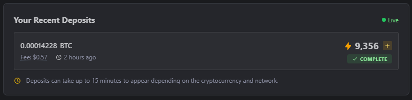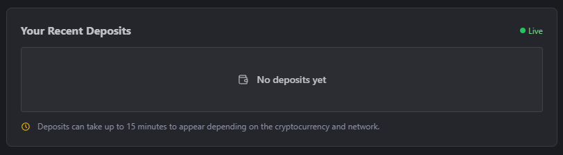 After a few minutes (or hours, depending on your currency and network!), you’ll hopefully see the deposit arrive;